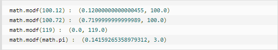 注意:modf()是不能直接访问的,需要导入 math 模块,通过静态对象调用该方法。